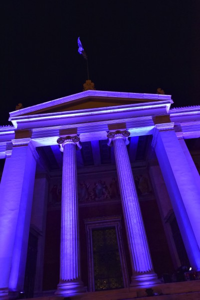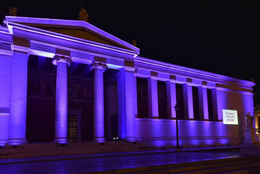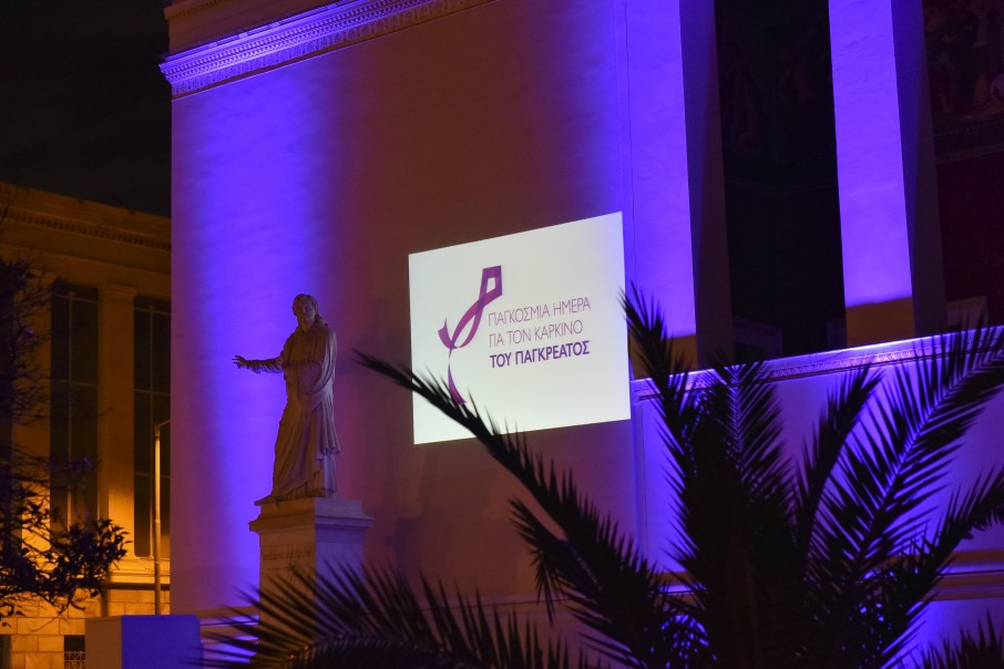 Στα χρώματα της Παγκόσμιας Ημέρας για τον Καρκίνο του Παγκρέατος φωτίστηκε το Πανεπιστήμιο Αθηνών με μήνυμα «Η έγκαιρη διάγνωση μετράει!»