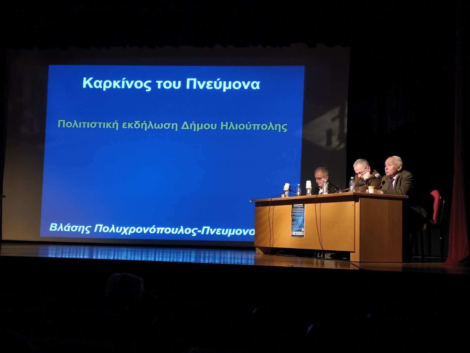 Ο κ. Βλάσης Πολυχρονόπουλος, Πνευμονολόγος τέως Δ/ντής Πνευμονολογικής κλινικής Σισμανόγλειο Νοσοκομείο Αθηνών, αναφέρθηκε στον καρκίνο του πνεύμονα. Τα αίτια είναι άγνωστα. Ο καρκίνος του πνεύμονα είναι από τους πιο θανατηφόρους. Υπάρχουν διάφοροι λόγοι. Οι καπνιστές έχουν πολλές πιθανότητες θανάτου από καρκίνο του πνεύμονα. Αναφέρθηκε στο άτμισμα και στο ηλεκτρονικό τσιγάρο. Θα χρειαστεί να περιμένουμε 50 χρόνια για να μπορέσουμε να βγάλουμε συμπεράσματα για τις επιπτώσεις του ατμίσματος. Εξήγησε αναλυτικά για τα συμπτώματα του καρκίνου του πνεύμονα και τόνισε τη σημασία της έγκαιρης επικοινωνίας με τον οικογενειακό γιατρό που θα παραπέμψει εφόσον χρειάζεται στους εξειδικευμένους επιστήμονες. Η πρόληψη είναι καθοριστική για την έκβαση της νόσου.