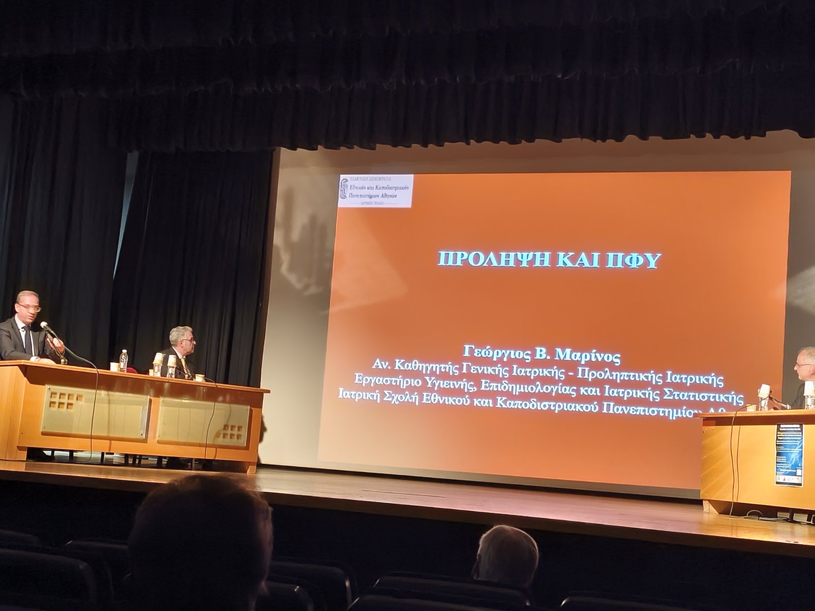 Ο κ. Γεώργιος Μαρίνος, Γενικός Ιατρός, Αναπληρωτής Καθηγητής Γενικής Ιατρικής – Προληπτικής Ιατρικής, Ιατρική Σχολή, ΕΚΠΑ, μίλησε εκτενώς για τον Γιατρό Πρωτοβάθμιας Φροντίδας. Ο γιατρός της οικογένειας αποτελεί καθοριστικό παράγοντα της υγείας. Αναφέρθηκε στους παράγοντες κινδύνου και στην πρόληψη, στις κυριότερες αιτίες θανάτου, στους κινδύνους στον εργασιακό χώρο και τη σημασία της διατροφής καθώς και σε άλλες μεμονωμένες αιτίες που επηρεάζουν την υγεία του ανθρώπου και κάνουν την παρουσία του οικογενειακού γιατρού επιβεβλημένη.