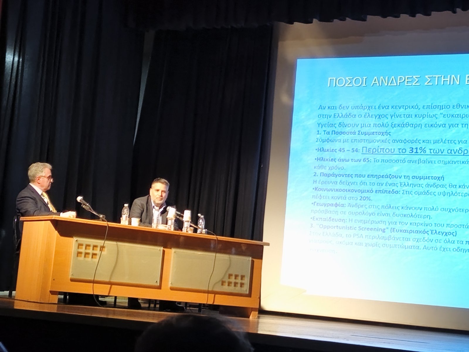 Ο κ. Θεόδωρος Καλογερόπουλος, Χειρουργός Ουρολόγος FEBU, Διευθυντής Ουρολογικού Τμήματος Γ.Ν.Α. «Ιπποκράτειο», αναφέρθηκε στον καρκίνο του Προστάτη και τόνισε τη σημασία της εξέτασης PSA. Χωρίς να αποτελεί το εργαλείο που θα αποφανθεί εάν κάποιος έχει καρκίνο καθώς δείχνει συνεχόμενες παραμέτρους και εξαρτάται από διάφορους παράγοντες, είναι δείκτης για το εάν χρειάζεται κανείς να προβεί σε επιπλέον εξετάσεις. Η κληρονομικότητα δεν είναι μεγάλη στον καρκίνο του προστάτη, ενώ όταν διαγνωστεί έγκαιρα είναι 100% ιάσιμη νόσος.