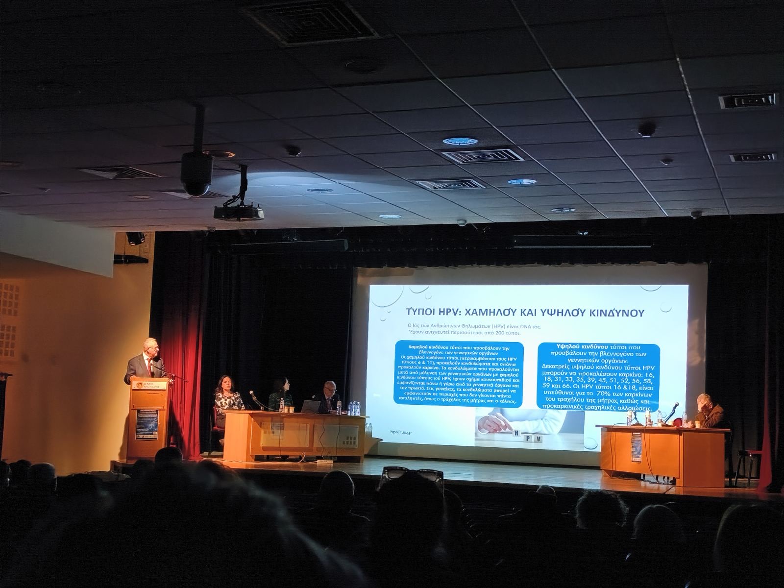 Ο κ. Μιχάλης Σίνδος, Γυναικολόγος, Δ/ντης ΕΣΥ, Νοσοκομείο «Αλεξάνδρα», αναφέρθηκε στον ιό HPV, τι αφορά και τι προκαλεί στον άνθρωπο, πώς επηρεάζει τις διάφορες μορφές καρκίνου. Μελέτες δείχνουν ότι το 5% των καρκίνων παγκοσμίως οφείλεται στον ιό των ανθρωπίνων κονδυλωμάτων. Το εμβόλιο φροντίζει για την πρόληψη κατά του ιού. Έχει ουσιαστικά σωματίδια που μοιάζουν με τον ιό, δεν περιέχει τον ιό και επομένως το εμβόλιο δεν είναι μολυσματικό. Αν πρέπει να περάσει ένα μήνυμα αυτό είναι ότι πρέπει όλοι να εμβολιάζονται ανάλογα με την κατηγορία που υπάγονται.