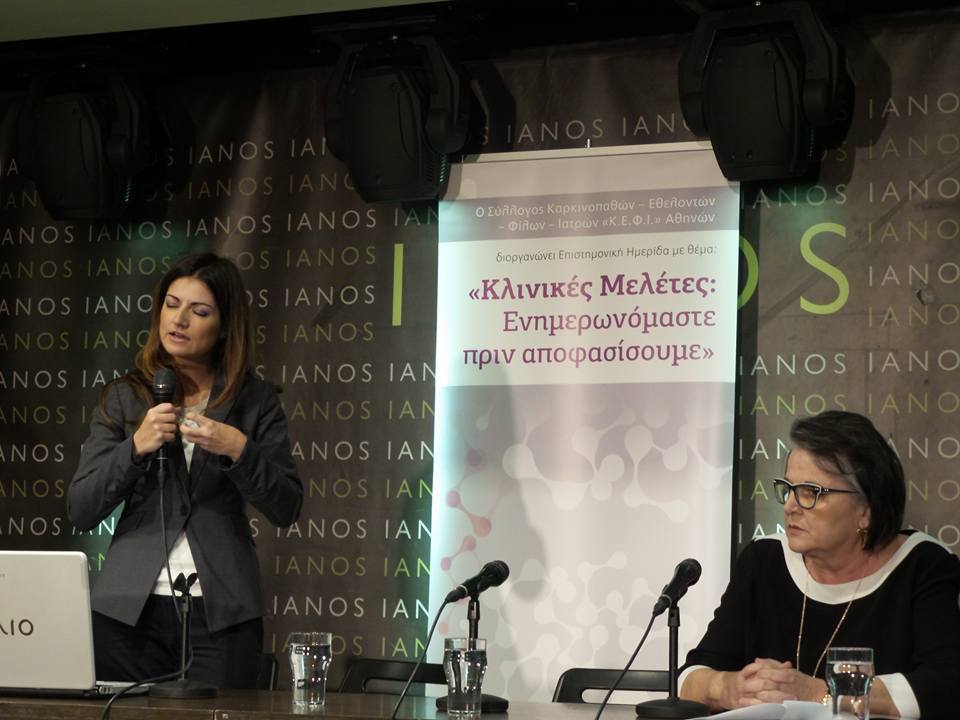 Η Ημερίδα ξεκίνησε με καλωσόρισμα & Χαιρετισμό της κας Ζωής Γραμματόγλου, Προέδρου Δ.Σ. Συλλόγου Καρκινοπαθών - Εθελοντών -Φίλων - Ιατρών «Κ.Ε.Φ.Ι.» Αθηνών, η οποία ανέφερε χαρακτηριστικά: «Η Κλινική Έρευνα αποτελεί το μοναδικό εγκεκριμένο τρόπο δημιουργίας και ανάπτυξης νέων φαρμάκων μέσω των Κλινικών Μελετών. Οι Κλινικές Μελέτες σχεδιάζονται έτσι ώστε να απαντήσουν σε ένα επιστημονικό και/ή ιατρικό ερώτημα σχετικά με ένα φάρμακο το οποίο προορίζεται για την θεραπεία ενός συγκεκριμένου πληθυσμού και για μία συγκεκριμένη ασθένεια. Είναι με απλά λόγια ένα «επιστημονικό πείραμα» που αποσκοπεί στην εκτίμηση της αποτελεσματικότητας και της ασφάλειας μιας θεραπείας σε μια συγκεκριμένη ομάδα ασθενών».