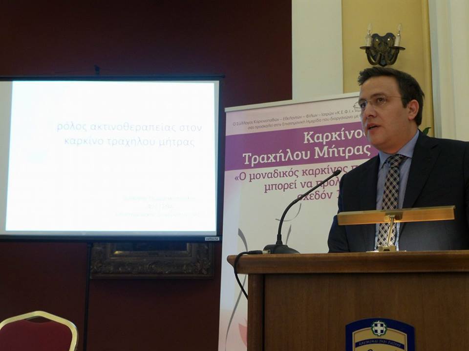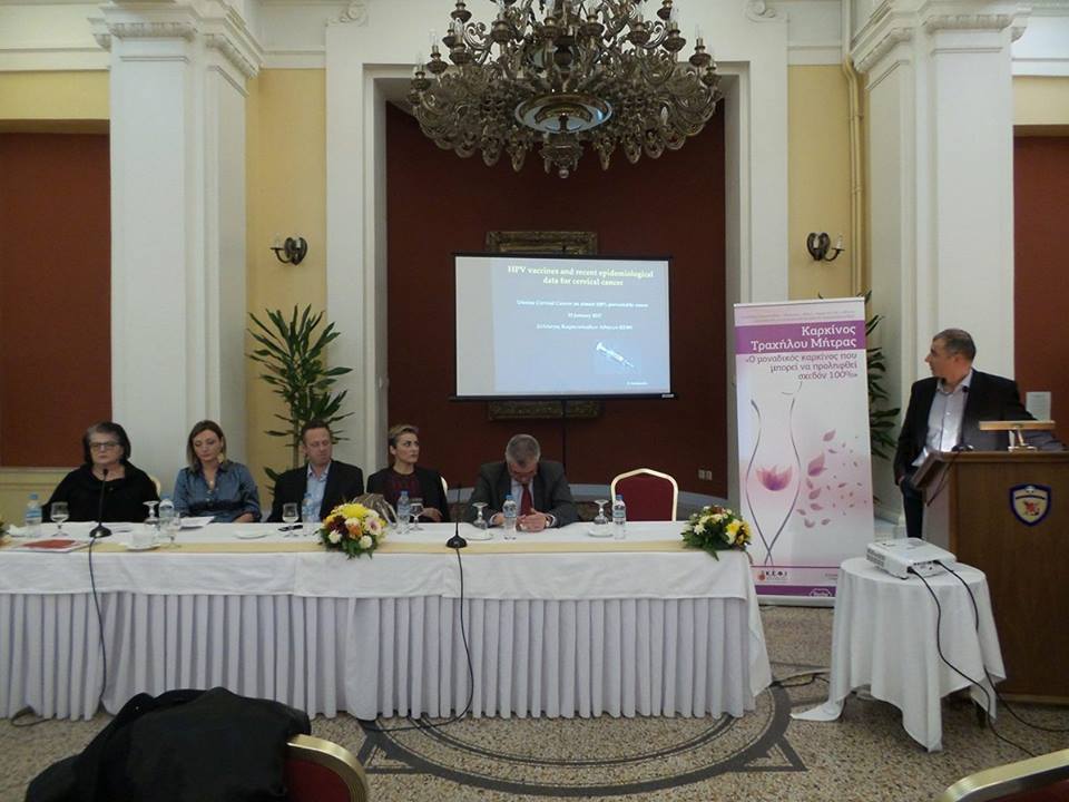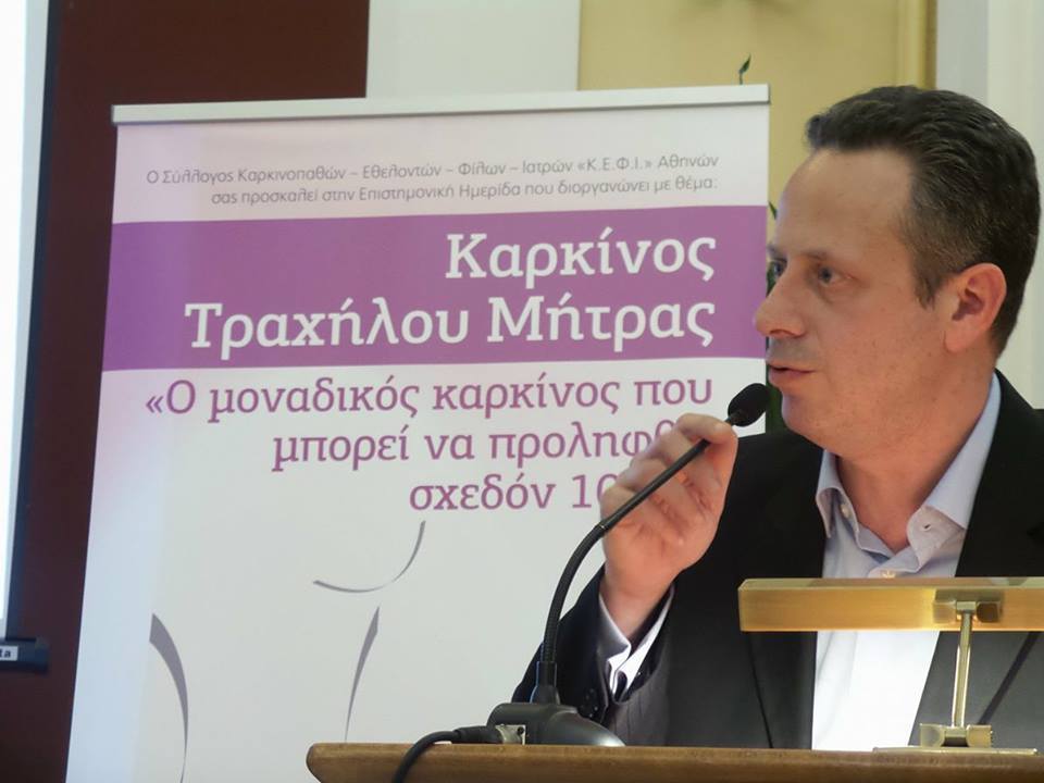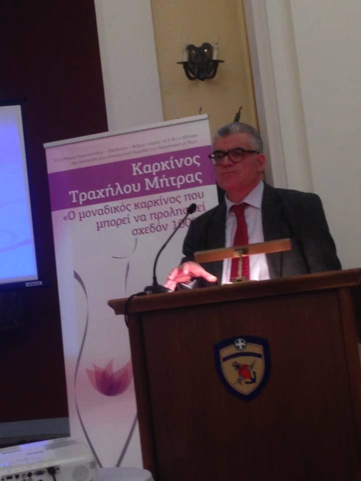 Η πρώτη επιστημονική ενότητα άρχισε με την ομιλία του κ. Αλέξανδρου Ι. Ροδολάκη, Καθηγητή Γυναικολογικής Ογκολογίας Πανεπιστημίου Αθηνών, ο οποίος, αναφερόμενος στον γυναικολογικό καρκίνο και τον καρκίνο του τραχήλου της μήτρας, επεσήμανε τη σημασία της πρόληψης, την ισχυρή συσχέτιση του ιού HPV και του καρκίνου του τραχήλου, τις βασικές αρχές προληπτικού ελέγχου πληθυσμού, τη διάγνωση και τις αρχές της θεραπευτικής αντιμετώπισης, καθώς και τις επεμβάσεις διατήρησης της γονιμότητας.»
