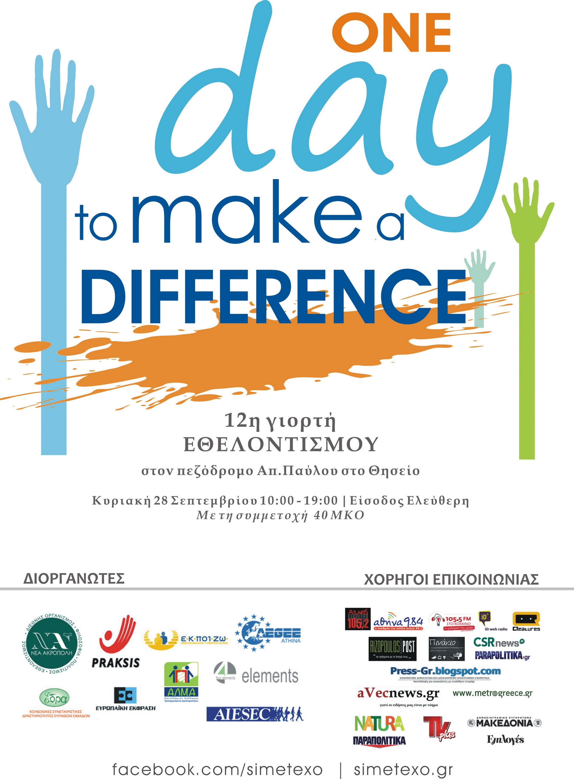 Με το μήνυμα αυτό, 40 εθελοντικοί οργανισμοί με τους εκατοντάδες εθελοντές τους μας προσκαλούν για 12η συνεχή χρονιά σε μια ανοιχτή γιορτή για τον Εθελοντισμό και την ανιδιοτελή προσφορά, τη Κυριακή 28 Σεπτεμβρίου, από τις 10:00 έως τις 19:00, στον πεζόδρομο Αποστόλου Παύλου, στο Θησείο. Οι ιδέες του Εθελοντισμού και της Αλληλεγγύης αποδεικνύονται, πλέον, ως απαραίτητο στοιχείο για μία κοινωνία ζωντανή, υγιή και εξελισσόμενη.