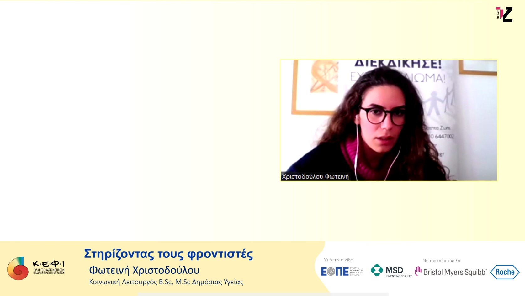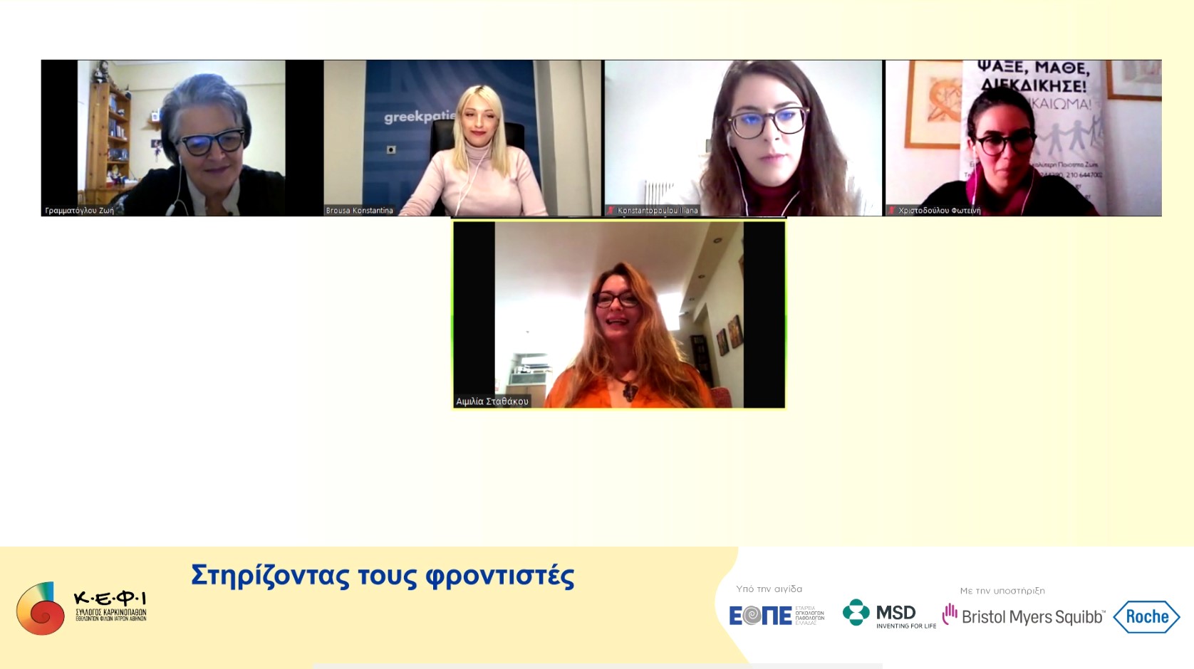 Στη διαδικτυακή εκδήλωση με τίτλο «Στηρίζοντας τους Φροντιστές» τον συντονισμό της συζήτησης ανέλαβε η κυρία Αιμιλία Σταθάκου, Δημοσιογράφος.