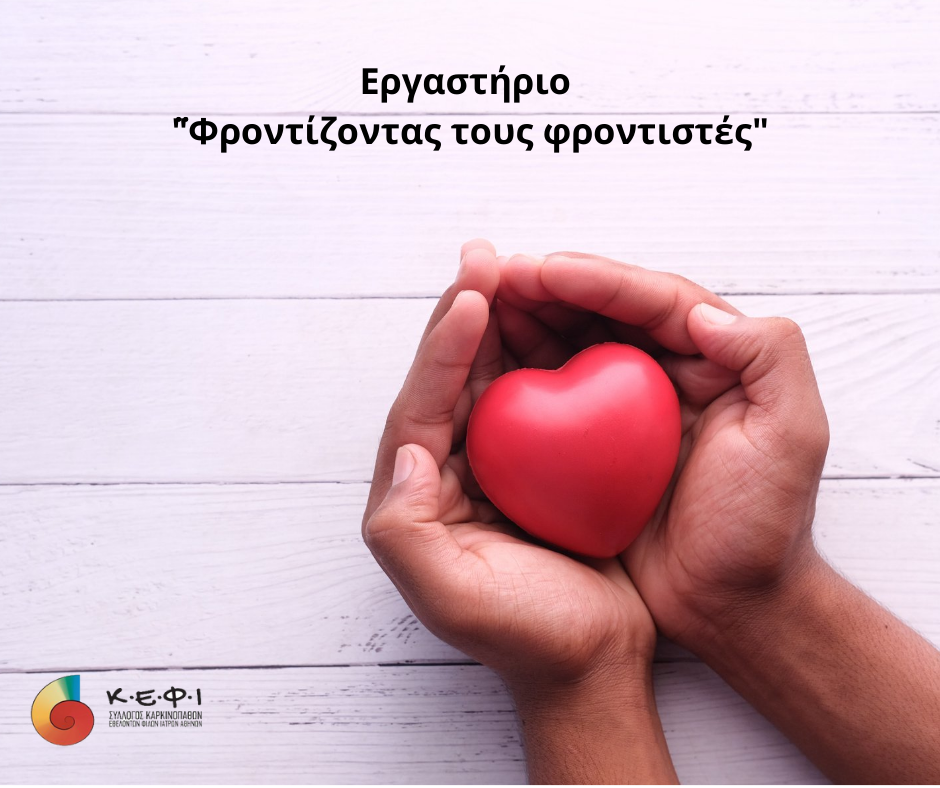 Η διάγνωση του καρκίνου φέρνει κρίση στη ζωή του ανθρώπου που νοσεί αλλά και στις ζωές των ανθρώπων που τον περιβάλλουν και το φροντίζουν. Οι φροντιστές εστιάζουν την προσοχή και δίνουν την ενέργειά τους στον άνθρωπο τους, παραβλέποντας τις δικές τους ανάγκες. Σε βάθος χρόνου η κούραση, οι ματαιώσεις και οι δυσκολίες δημιουργούν άγχος και ψυχικό βάρος. Στο Σύλλογο λαμβάνουμε υπόψη τις ανάγκες του ασθενούς αλλά και των ανθρώπων που βρίσκονται στο παρασκήνιο και τους υποστηρίζουν. Στο εργαστήριο ‘Φροντίζοντας τους φροντιστές’ εστιάζουμε στις ανάγκες και τις δυσκολίες των ανθρώπων αυτών με στόχο την ενδυνάμωσή τους.