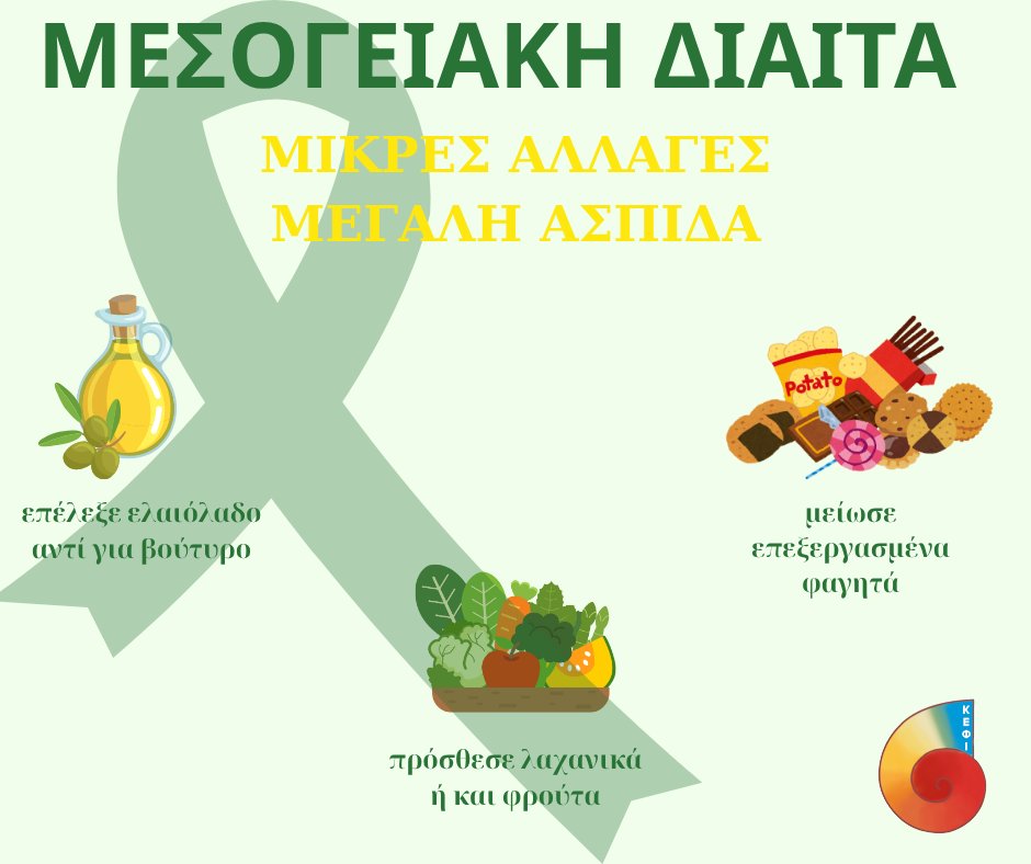 Adherence to Mediterranean Diet and Colorectal Cancer Risk ‑ Meta‑Analysis: Μετα-ανάλυση που έδειξε ότι η μεσογειακού τύπου δίαιτα συνδέεται με ~16% μείωση της εμφάνισης καρκίνου του παχέος εντέρου. SpringerLink