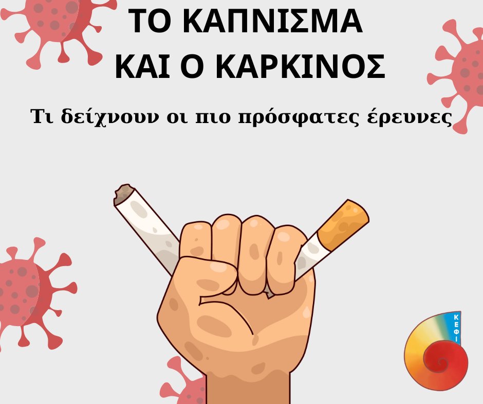 Το κάπνισμα σχετίζεται με πολλούς τύπους καρκίνου: πνεύμονα, τραχείες-βρόγχοι, οισοφάγο, λάρυγγα, στοματική κοιλότητα, λάρυγγα, ουροποιητικό σύστημα, πνεύμονα, παγκρέατα, ήπαρ κ.ά. PubMed 3PubMed 3Παγκόσμιος Οργανισμός Υγείας 3 - Παγκόσμιο φορτίο