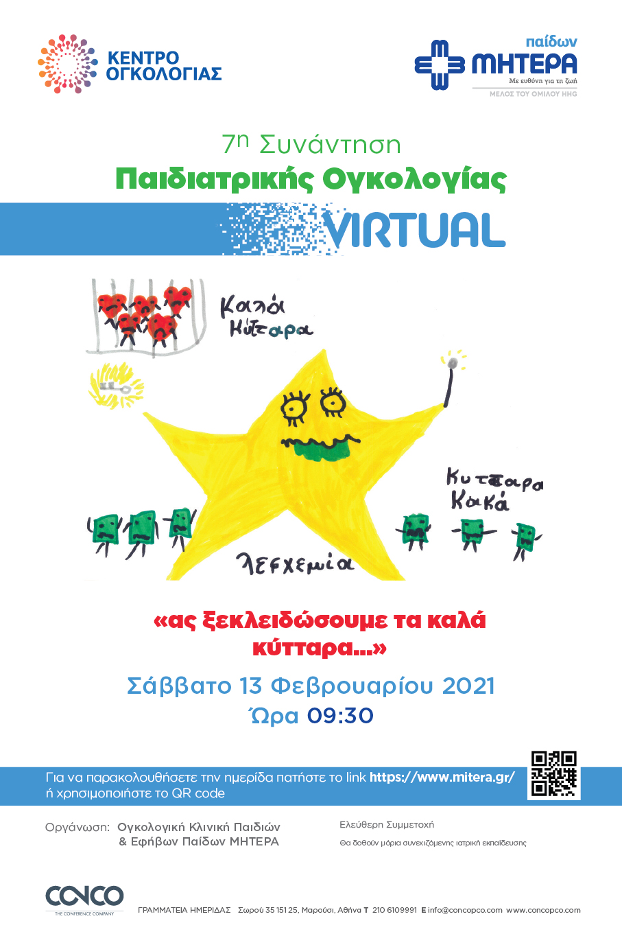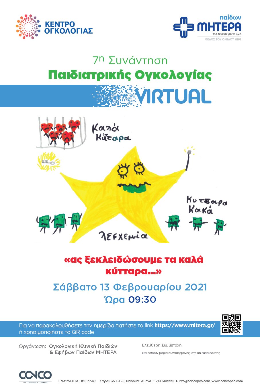 Το Σάββατο 13 Φεβρουαρίου στις 9.30 π.μ. θα πραγματοποιηθεί διαδικτυακά η 7η Συνάντηση Παιδιατρικής Ογκολογίας που διοργανώνεται από την Ογκολογική Κλινική Παιδιών & Εφήβων Παίδων ΜΗΤΕΡΑ.