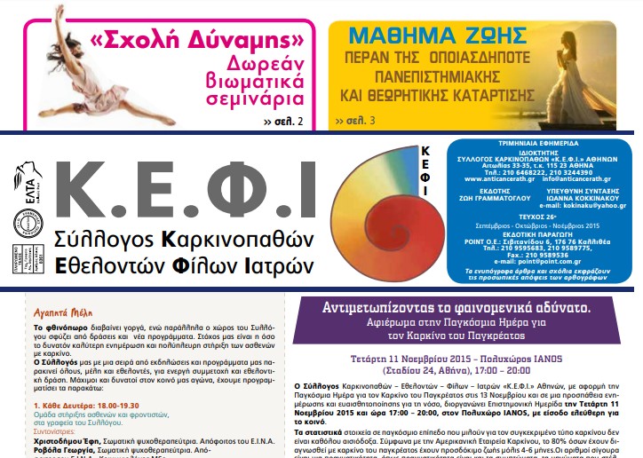 - Αφιέρωμα στην Παγκόσμια Ημέρα για τον Καρκίνο του Παγκρέατος, Τετάρτη 11 Νοεμβρίου 2015 - Πολυχώρος IANOS