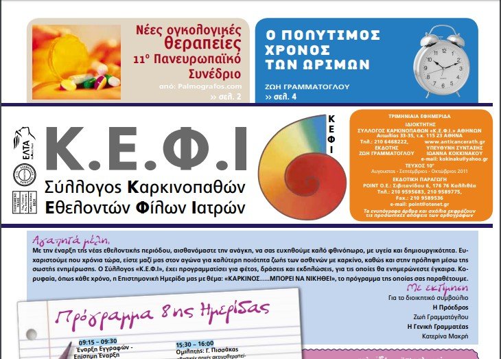 Περιοδικό Κ.Ε.Φ.Ι.ΕΚΠΑΙΔΕΥΣΗ-ΕΝΗΜΕΡΩΣΗ ΚΟΙΝΟΥ ΑΡΘΡΑ/ΔΗΜΟΣΙΕΥΣΕΙΣΕΜΠΕΙΡΙΕΣ/ΒΙΩΜΑΤΙΚΑ ΑΡΘΡΑΕΝΤΥΠΑ/ΟΔΗΓΟΙΧΡΗΣΙΜΕΣ ΠΛΗΡΟΦΟΡΙΕΣΠΕΡΙΟΔΙΚΟ Κ.Ε.Φ.Ι.ΔΙΚΑΙΩΜΑΤΑ ΑΣΘΕΝΗ 10.10.2011 10ο ΤΕΥΧΟΣ επιστροφή 10ο ΤΕΥΧΟΣ Πρόγραμμα 8ης Ημερίδας Συλλόγου Κ.Ε.Φ.Ι Αθηνών Νέες ογκολογικές θεραπείες - 11ο Πανευρωπαϊκό Συνέδριο Εις μνήμην Λίτσας Σωτηροπούλου - Κατσορίδα Τα τρένα της ζωής μας (Σαλώμη Καφούρη) DOWNLOADSΚατεβάστε το 10ο τεύχος στον υπολογιστή σας (pdf / 1,7 MB)